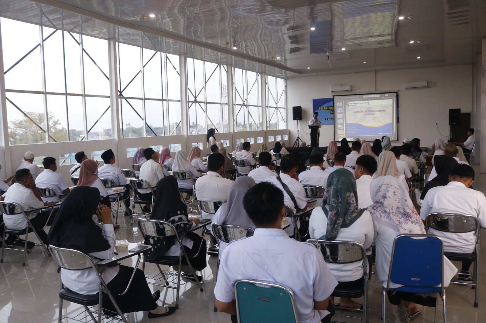 Pekanbaru – Pegawai di lingkungan Dinas Perpustakaan dan Kearsipan Kota Pekanbaru didorong untuk menjadi pelopor gerakan pemilahan sampah mulai dari rumah dan kantor. Langkah preventif ini dilakukan melalui sosialisasi dan praktek langsung pengelolaan sampah yang digelar bersama Dinas Lingkungan Hidup dan Kebersihan (DLHK) pada Rabu (15/4/2026).