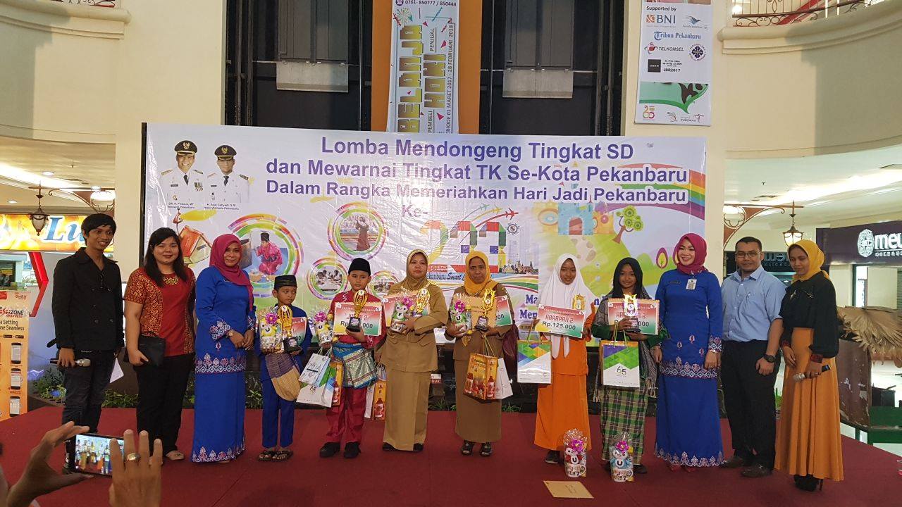 Meriah, itulah kata yang bisa mewakilkan kegiatan Lomba Mendongeng tingkat Sekolah Dasar (SD) dan Lomba Mewarnai Tingkat Taman Kanak-Kanak (TK) yang dilakasanakan di Lantai 1 Mal Pekanbaru. Rangkaian peringatan Hari Jadi Pekanbaru yang Ke-233 masih terus berlanjut. Kemarin (7/8) , Dinas Perpustakaan dan Kearsipan Kota Pekanbaru bersama dengan panitia Hari Jadi Pekanbaru menggelar kegiatan Lomba Mewarnai untuk tingkat TK Se-derajat dan Lomba Mendongeng untuk tingkat SD Se-Kota Pekanbaru. Lomba ini diikuti oleh 12 peserta lomba mendongeng yang merupakan perwakilan dari 12 UPTD Dinas Pendidikan Kota Pekanbaru dan 200 peserta lomba mewarnai yang merupakan siswa-siswi Taman Kanak-Kanak yang ada di Kota Pekanbaru.