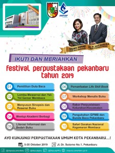 Bulan Oktober 2019 ini bakal ada event tahunan Festival Perpustakaan Pekanbaru terbesar di Pekanbaru, ada 10 kegiatan yang diadakan : – Pemilihan