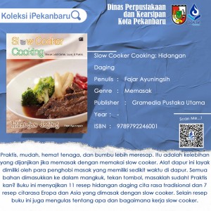 Slow Cooker Cooking: Masak Lebih Sehat, Lezat dan Praktis Hidangan Daging Penulis : Fajar Ayuningsih Genre : Memasak Publisher : Gramedia Pustaka