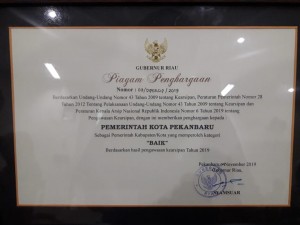Tahun ini, Pemerintah Kota Pekanbaru kembali meraih penghargaan Laporan Audit Kearsipan Eksternal (LAKE) terbaik tahun 2019 di Riau. Pekanbaru meraih predikat baik